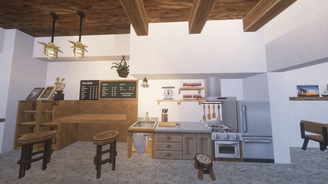 建築学科の学生がマインクラフトで作ったマンション内装デザインの一例(キッチン)