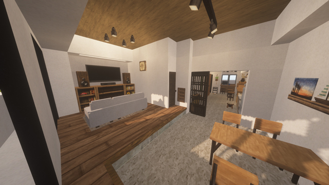 建築学科の学生がマインクラフトで作ったマンション内装デザインの一例(リビング・ダイニング)