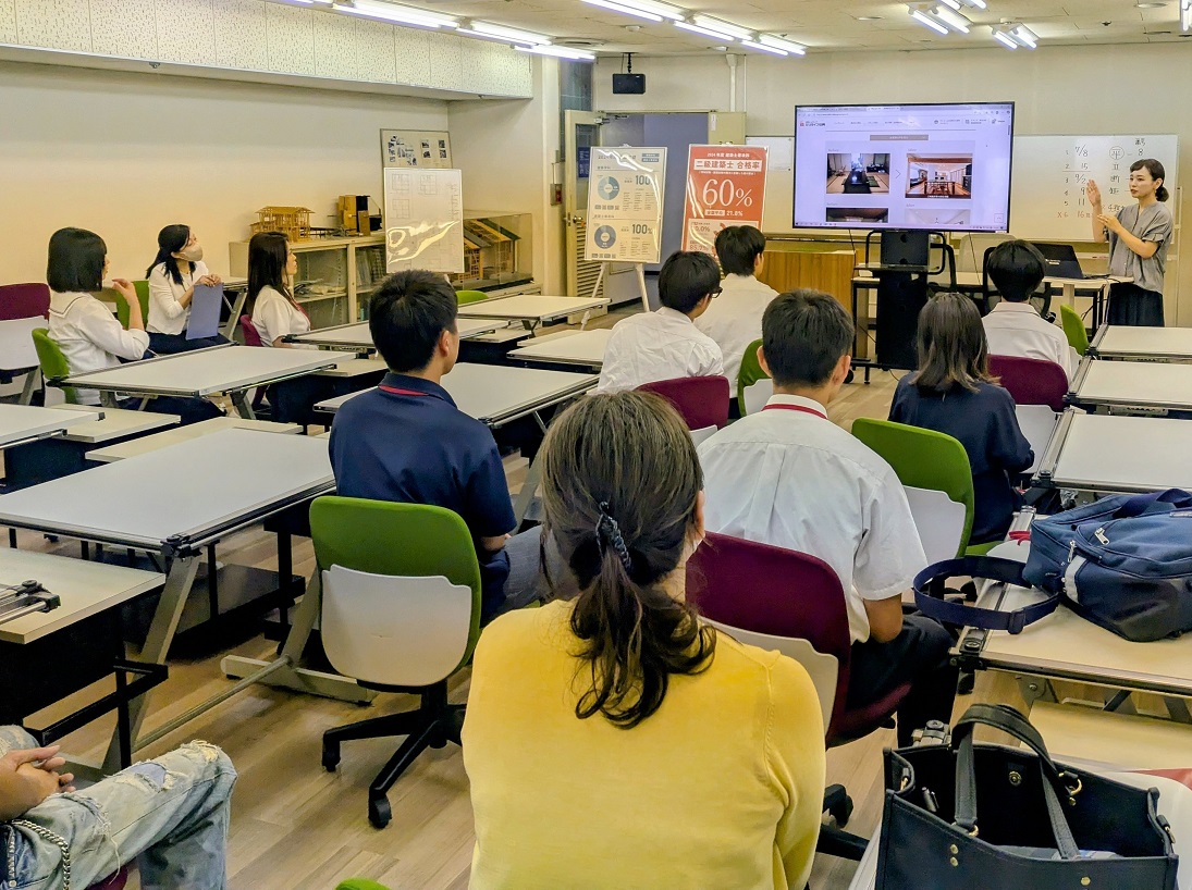 建築学科の卒業生で、現在は㈱リライフ日興(日興ホームグループ)で活躍されている荒谷愛子さんをお招きし、インタビュー会を行いました。