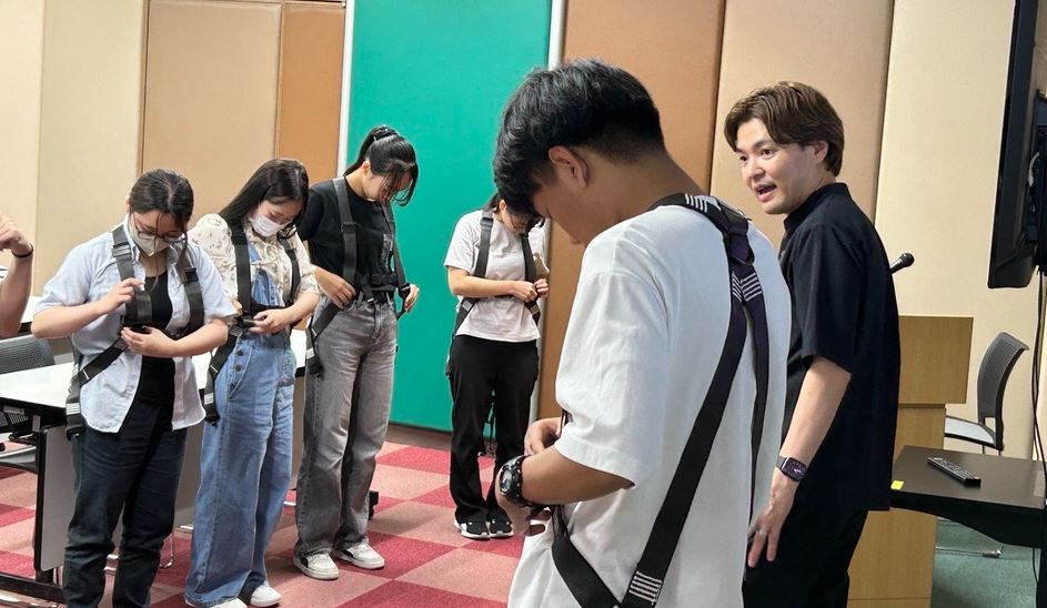 2日目は墜落制止用器具(フルハーネス)の装着の必要性を学び、実際に装着してみました。