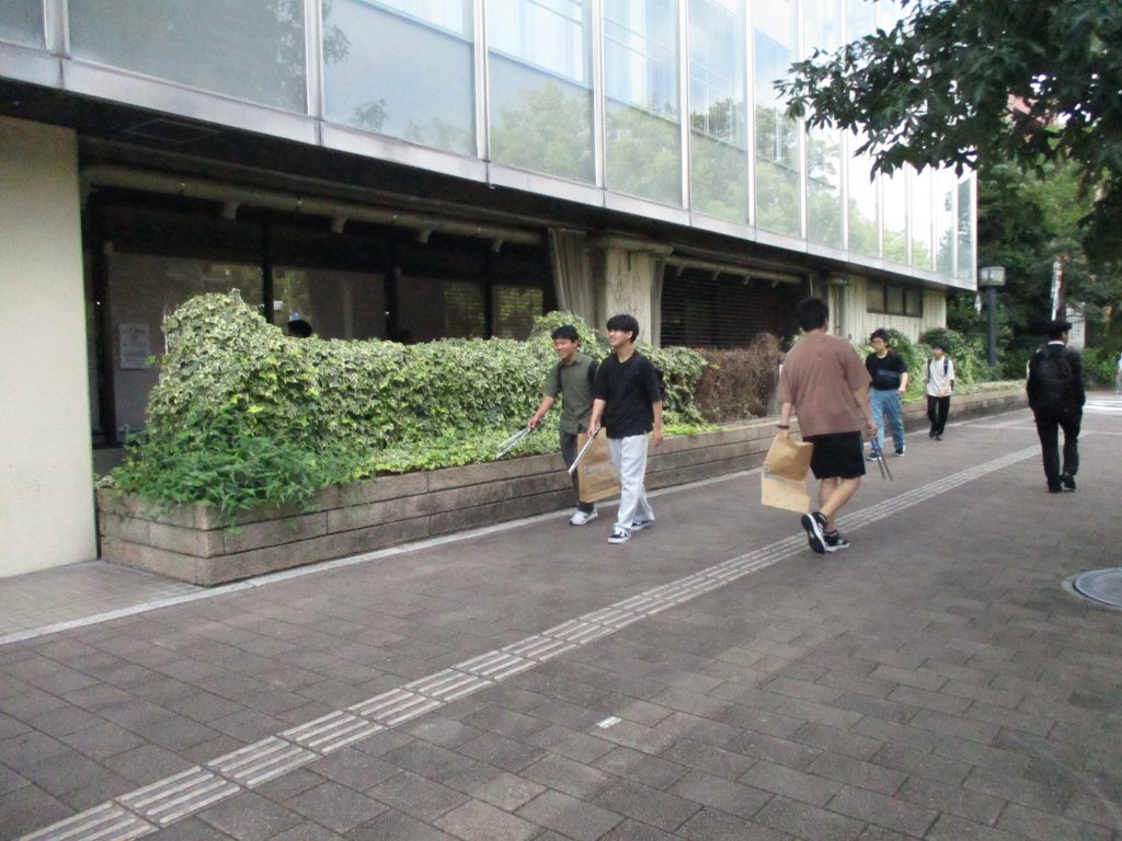 1階のエントランスには「おはようございます」という元気な声が響き、清掃活動は、学校周辺や駐輪場、平和大通りの緑地帯のゴミ拾いを行い、街の美化に貢献してくれました。