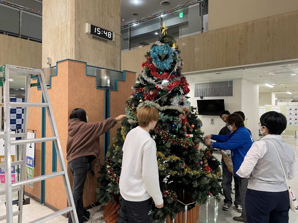 毎年この時期になると、本校1階ロビーは3メートルほどの大きなツリーをはじめクリスマスモードに様変わりします。