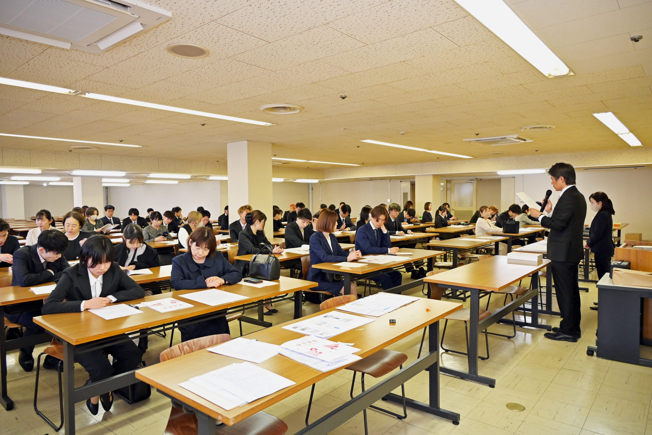 式典後のガイダンスでは学科別に分かれて、予定の連絡や教科書の購入を行ないました。