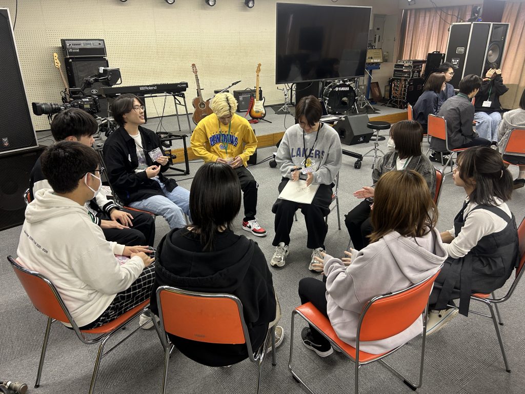 フリーに歓談する時間もあって、2年生から1年生に対して「どの部門に興味がある?」とか、互いの趣味や好きなアーティストの話題などで盛り上がりました。