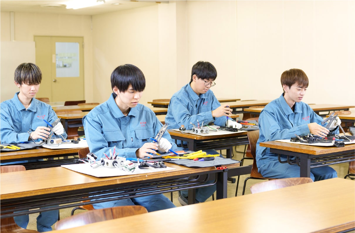企業では即戦力を求める声が高まっています。このニーズに応えるべく、社会で必要とされる多くの電気系国家資格取得を目指し果敢に挑戦。一つでも多くの合格を勝ち取るため、少人数編成授業で目標や能力に応じてしっかりサポートします。