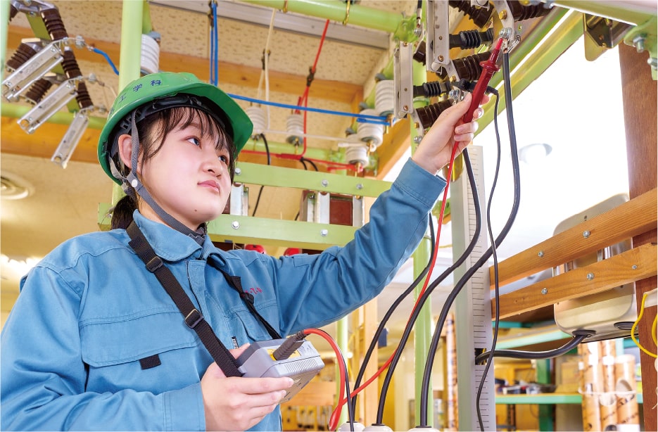 高圧受電設備や検査機器をはじめ、実機材をそろえた実習設備で、即戦力として必要な知識と技術を身につけます。