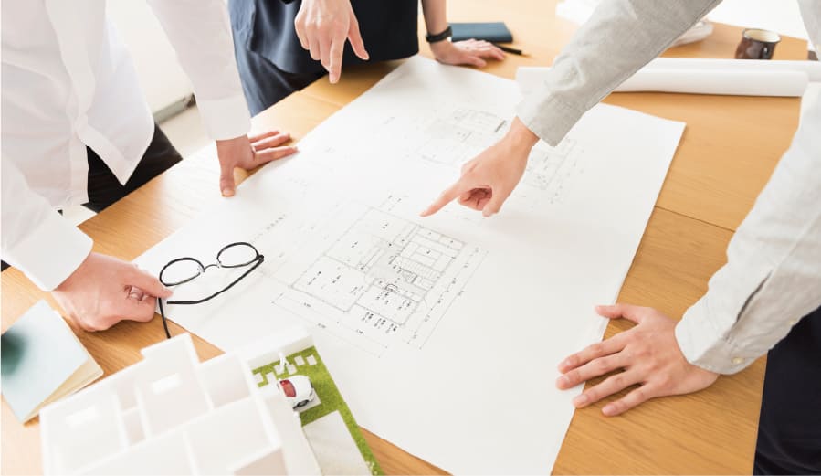 基礎を確実に 初学者も安心して学べるよう、建築の法律、製図、測量、デザインなど、基礎的な科目を幅広く学習します。 |